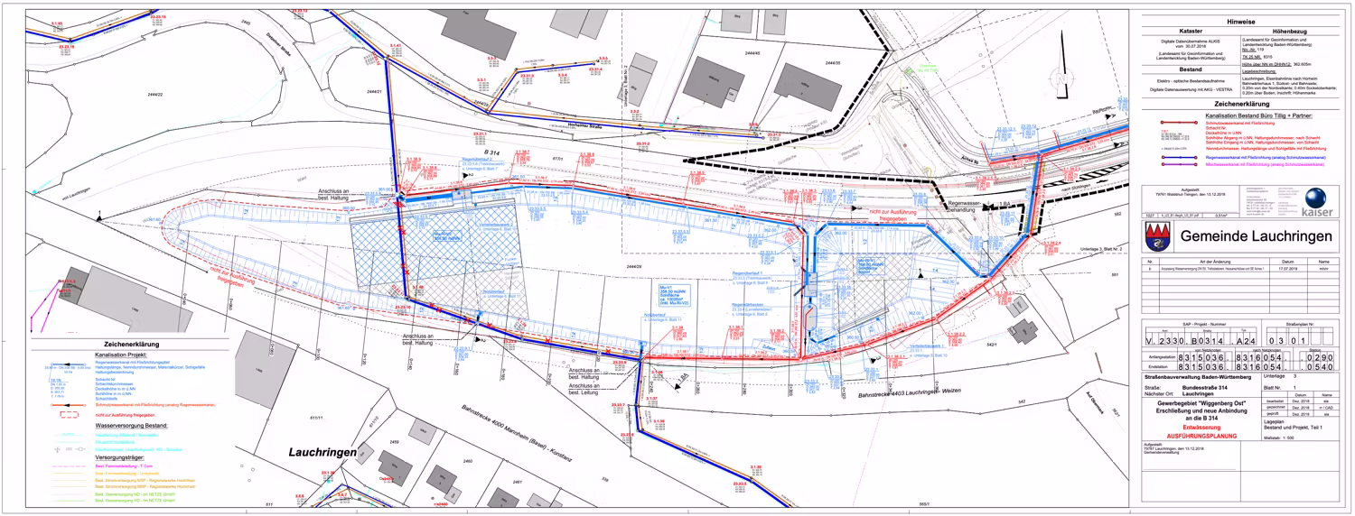 Im Zuge des Bebauungsplanverfahrens „Wiggenberg Ost 1. BA“, fanden intensive Abstimmungen zwischen dem LRA WT und dem Planungsbüro Kaiser statt. Dabei gab das LRA WT vor, dass bei einer Einleitung des Niederschlagwassers in die Wutach, die Zulässigkeit der Einleitung nach dem Arbeitsblatt DWA- A 102 (Gelbdruck) nachzuweisen ist.